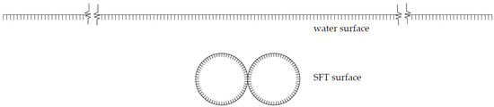 Since the SFT length is much greater than the section size, the right-handed 2D coordinate system is established to investigate the interaction between waves and the SFT, as shown in Figure 1, which also contains the identification of the movement in each direction. The calculation of the hydrodynamic part on the structure is based on the potential flow theory, and the higher-order boundary element method (HOBEM) is applied to discrete body surface and water surface, the calculation of the mooring line is based on the slender rod theory, and the finite element method is used here. The wave–SFT–mooring interaction system is coupled by matching conditions at the fairleads in the time domain.