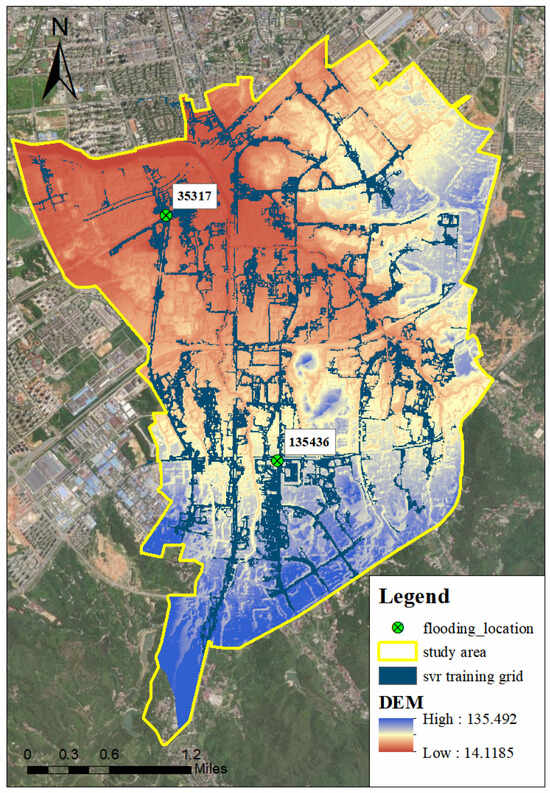 Selected training grids for the SVR model and the flooding location index.
