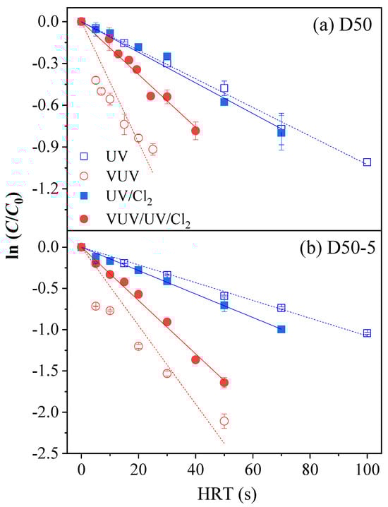 - Li, M.; Qiang, Z.; Hou, P.; Bolton, J.R.; Qu, J.; Li, P.; Wang, C. VUV/UV/Chlorine as an Enhanced Advanced Oxidation Process for Organic Pollutant Removal from Water: Assessment with a Novel Mini-Fluidic VUV/UV Photoreaction System (MVPS). Environ. Sci. Technol. 2016, 50, 5849–5856. [Google Scholar] [CrossRef] [PubMed]