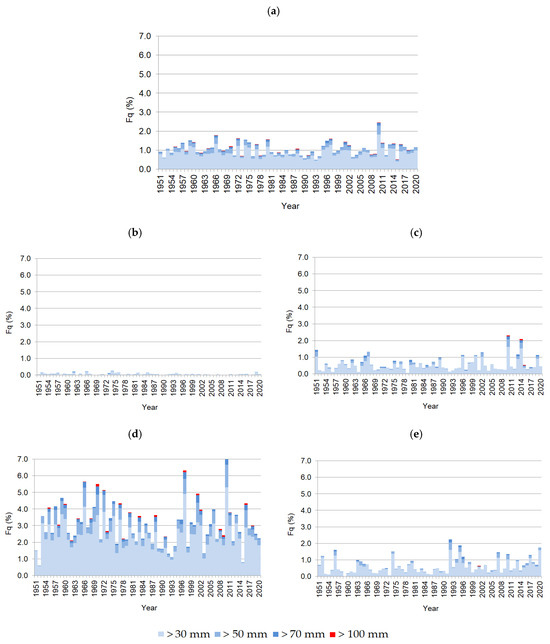 | (%) | >30 mm | >50 mm | >70 mm | >100 mm | >30 mm | >50 mm | >70 mm | >100 mm | |