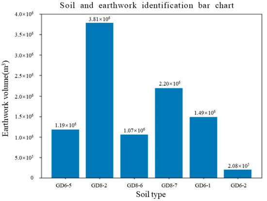 - The geological prediction model of a 3D point cloud in dredging construction areas is established by calculating the difference in earthwork quantity. The model is based on the grid size after the convergence of the calculation of earthwork difference, which can ensure the reliability of the earthwork calculation. The grid result is based on the two converging results and must meet the requirement that with the change in grid size, the overall change amplitude of earthwork volume is less than 0.1%, and the change amplitude of excavation and fill volume is less than 0.05% (Section 4 of Part III). Therefore, the calculation result of the earthwork is reliable. With the progress of the dredging construction process, the obtained soil is mixed with various types of soil, such as silt and yarn, and their separation often requires elevated costs; therefore, in the actual construction process, accurately obtaining the amount of soil of the various different soil types is extremely difficult. Therefore, at present, only the collected point cloud data are missing the actual data of various types of soil volume, and it is difficult to compare the predicted results with the actual results to verify their accuracy.