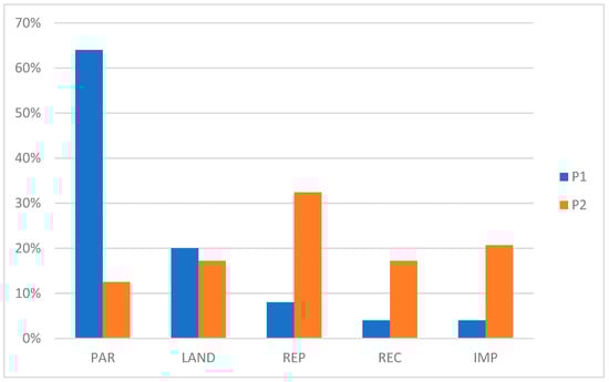 As shown in Table 1, Participation codes are the most widespread but not the most frequent, appearing 64 times across 16 plans and accounting for 20.9% of total thematic KOs. Distribution across the two periods is the same but relatively uneven across plans given that there are 32 KOs across 6 plans in P1, and 32 across 11 plans in P2.