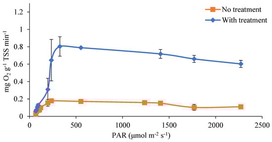 - Barreiro-Vescovo, S.; González-Fernández, C.; Ballesteros, M.; de Godos, I. Activity determination of an algal-bacterial consortium developed during wastewater treatment based on oxygen evolution. J. Water Process Eng. 2020, 36, 101278. [Google Scholar] [CrossRef]