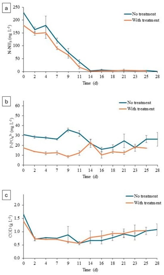 | N-NH4+/N-NH3 (g L−1) | 2.10 ± 2.33 | 2.02 ± 1.96 |