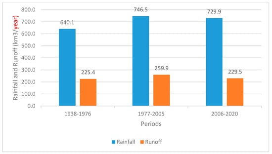 As can be seen from Table 3, the average annual loss of runoff is defined as the difference with the deduction of the corresponding stock value from its predicted value. The reconstructed or predicted runoff is calculated by multiplying the average annual precipitation by the 1938–1976 runoff coefficient.