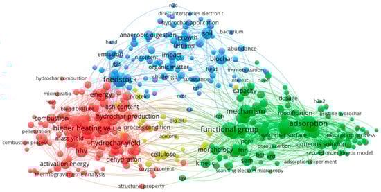 Hop map of keywords for articles on the use of hydrochar using VOSviewer1.6.19 software.