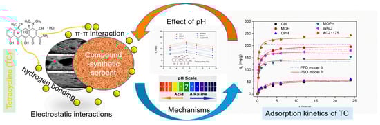 Proposed mechanism for TC adsorption by hydrochar, modified-hydrochar, and hydrochar-derived ACs [92].