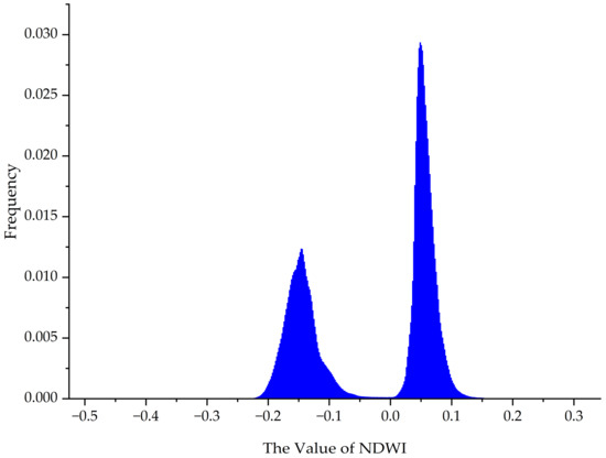 Frequency histogram of NDWI. The blue color in the figure represents the frequency histogram.
