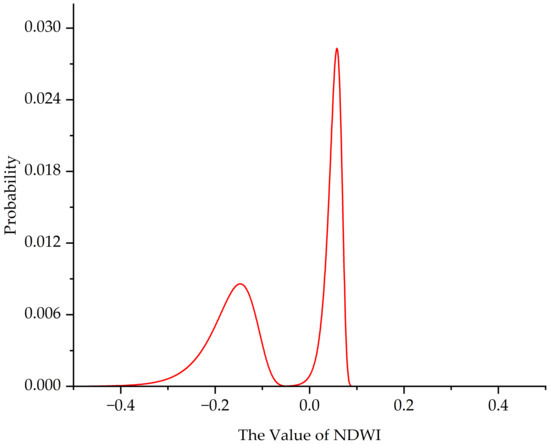 First, the normalized water body index method is applied to the remote sensing image data. The pixel values of the NDWI images are taken as input. The Gumbel distribution parameters and mixture weights are estimated by great likelihood.