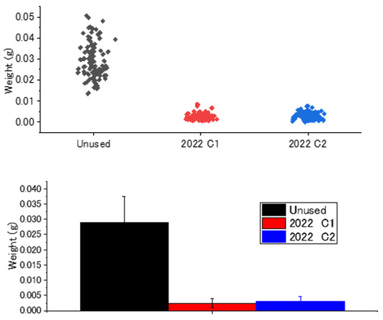 - Comparisons of the proportion of the floating capsules to >3 mm biomass fragments between two distinct populations were conducted. Population 1 consisted of floating capsules from a field with continuous use of coated fertilizer, while Population 2 consisted of floating capsules from a field with intermittent coated fertilizer application. The results revealed that significant degradation of the capsules typically occurred more than 2 years after the application of the coated fertilizer to the paddy fields.