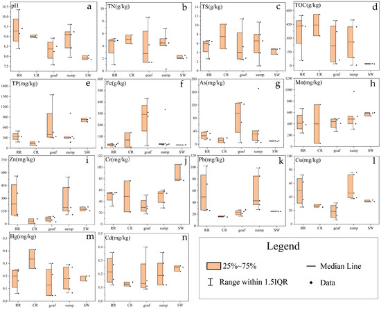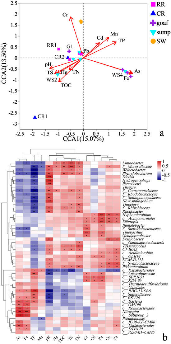 - Gao, P.; Sun, X.; Xiao, E.; Xu, Z.; Li, B.; Sun, W. Characterization of iron-metabolizing communities in soils contaminated by acid mine drainage from an abandoned coal mine in Southwest China. Environ. Sci. Pollut. Res. 2019, 26, 9585–9598. [Google Scholar] [CrossRef]