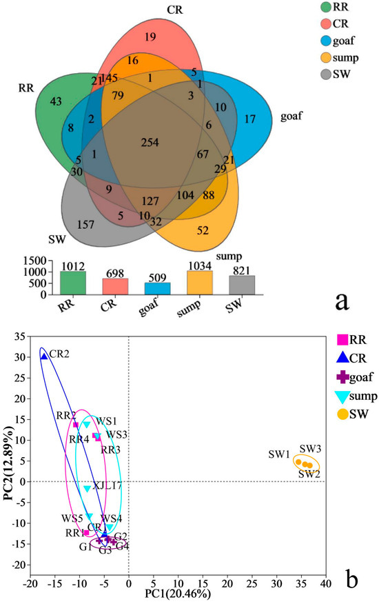 - Sun, W.; Xiao, E.; Krumins, V.; Dong, Y.; Li, B.; Deng, J.; Wang, Q.; Xiao, T.; Liu, J. Comparative analyses of the microbial communities inhabiting coal mining waste dump and an adjacent acid mine drainage creek. Microb. Ecol. 2019, 78, 651–664. [Google Scholar] [CrossRef] [PubMed]