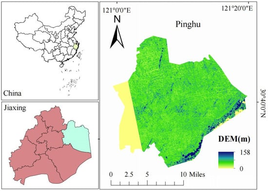 Pinghu City is located on the East China Sea coast, at the Hangjiahu Plain’s eastern end in northeastern Zhejiang Province and the southern wing of the Yangtze River Delta. The total annual average water resources are 283 million m3. The current water supply sources in Pinghu City include water from outside the domain, river network water, unconventional water, etc., and the water users are generalized into three categories: residential users, non-residential users, and special water users. The limited water resources and increased water demand are increasingly restricting the sustainable development of Pinghu City. The location of the research area is shown in Figure 5.