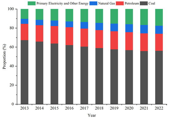 China’s energy consumption structure (2013–2022).