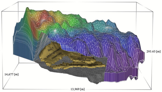 The aforementioned factors affecting the site selection of CMURs are numerous, and the ways and angles in which these factors influence the reservoirs are varied. Building CMURs by injecting water into abandoned goafs to form storage spaces inevitably disrupts the original dynamic balance of the groundwater system. Chen et al. [33] developed a detailed hydrogeological model for both the mining area and the underground reservoir. The impact of underground reservoir construction on the flow field was analyzed using factors like mining height at the reservoir site, storage range, overlying rock lithology, and water level. Sensitivity coefficients for each factor were determined. Numerical simulation was employed as a common method for establishing and analyzing groundwater systems. Figure 5 shows the groundwater system model of the Daliuta coal mine in the Shendong mining area [33]. Another method for considering the site selection of CMURs is based on water storage capacity. Distributed CMURs are suitable for coal mines with simple geological conditions. Faults, karst, and other geological structures have a significant impact on stress changes, hydraulic fracture propagation, and permeability distribution, which may lead to water seepage and even dam collapse. Therefore, the construction of CMURs was recommended to avoid areas with well-developed geological structures of this type. The storage capacity of CMURs was found to be positively correlated with mining height, roof permeability, and storage coefficient. Conversely, it was negatively correlated with the level of the coal seam floor and the floor permeability. A method for selecting sites for CMURs based on entropy weight and a calculation model for the storage capacity were developed by Zhang et al. [34]. Furthermore, the significance of hydrochemistry for the selection of CMUR sites was discussed by Guo et al. [35]. The durability of artificial concrete dams could be reduced under the dry–wet cycling effects of high-sulfate water. CMURs were not suitable for locations with poor water quality and a high tendency for water-rock interactions. The concentrations of Ca2+, sodium adsorption ratio (SAR), and F- in the water were found to be further increased under the influence of water-rock interactions, adversely affecting water quality improvement.