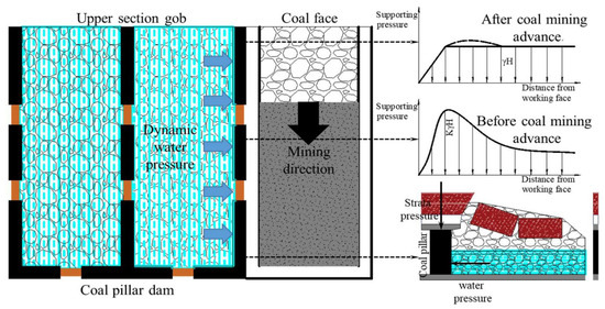 Relationship between working face mining and the formation of coal pillar dams (modified from [48]).