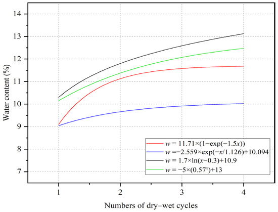Relationship between coal sample water content w and dry–wet cycle numbers.