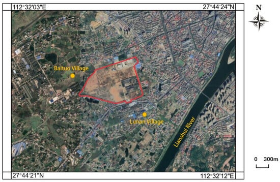The study area is located in a chromium slag legacy site of a former ferroalloy factory in Hunan Province, China. It is bordered by Baituo village to the west and Alunan village and the Lianshui River to the southeast. We evaluated the performance of the proposed method by modeling the transport of Cr(VI) in confined aquifers. The study area (Figure 4) is a chromium slag-contaminated site located in Hunan Province, China, with the Lianshui River roughly 1.0 km southeast of the site, which is in a humid subtropical climate region. The site was an abandoned ferroalloy plant covering 0.5901 km2, which produced chromium metals. Chromium was produced for nearly 50 years at this site until it was closed in 2006. It is estimated that approximately 200,000 tons of chromium-bearing slags and tailings were produced and disposed of on the ground during this period. This extensive production and accumulation of slag at the site are believed to have caused the leakage of chromium into the soil and groundwater, resulting in severe Cr(VI) contamination. Therefore, a high-resolution 3D simulation of Cr(VI) transport in the groundwater is essential for understanding its migration and guiding post-remediation efforts at the site.