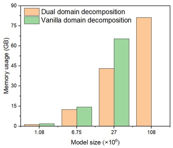 Please note that the runtime of the AMG preconditioned method for the problem with 108 million degrees of freedom is not available (Table 8). This is due to the high level of memory usage for the AMG preconditioned method. For the problem with 108 million degrees of freedom, the memory usage exceeds the maximum system memory capacity. Therefore, besides its superior time efficiency, the proposed method also outperforms the AMG preconditioned method in terms of memory usage.