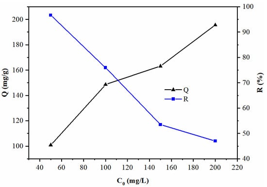 The efficiency of adsorbents is typically assessed based on the removal ratio and adsorption capacity. These parameters can be calculated using Equations (3) and (4), respectively: