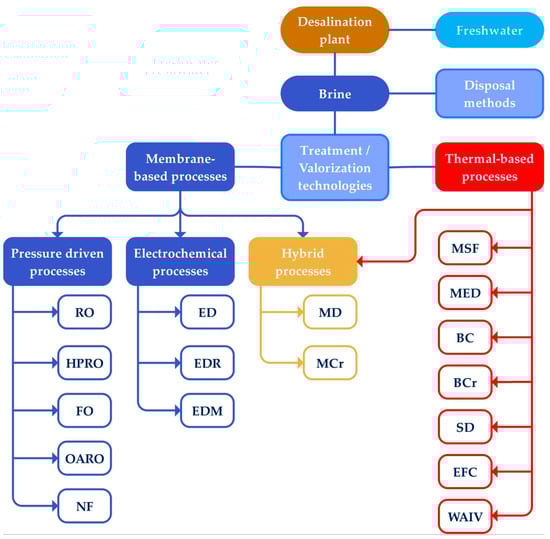 Main technologies used for the treatment and valorization of desalination brine.