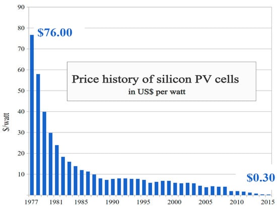 Evolution of crystalline silicon PV module prices: 1977–2015 (USD/Watt) [].