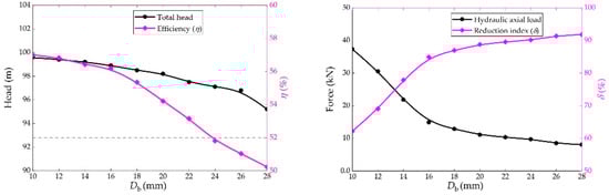Hydraulic axial loads and reduction indexes with different values of Db. Schematic diagram of axial load components on the impeller [].