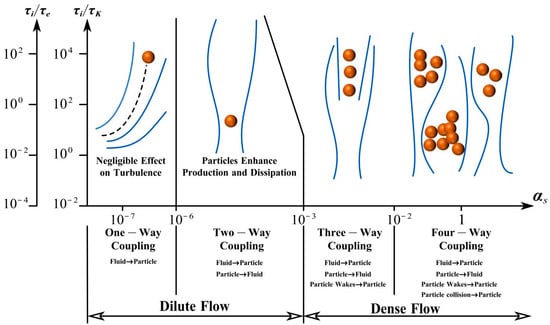 - Squires, K.D.; Eaton, J.K. Particle response and turbulence modification in isotropic turbulence. Phys. Fluids A Fluid Dyn. 1990, 2, 1191–1203. [Google Scholar] [CrossRef]