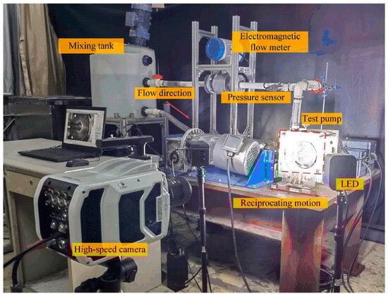 Although numerical simulation can provide profound insights and useful predictions in many cases, its accuracy is not always guaranteed. Experimentation has become an indispensable component for validating the accuracy of numerical simulations. Through experimentation, the behavior of actual systems can be directly observed and measured, thereby validating and calibrating simulation results. In the early stages, experimental methods for deep-sea lift pumps primarily focused on the pump’s external characteristics, although they played a role in validating the accuracy of pump simulations, they could not reflect the internal particulate flow behavior. On-intrusive flow visualization optical techniques play a decisive role in the historical development of fluid mechanics. In recent years, advancements in technology such as cameras, lasers, and other devices have improved the accuracy and reliability of methods like high-speed imaging (HSI) and particle image velocimetry (PIV), making them more effective in visualizing complex transient flows []. By employing non-intrusive flow visualization optical techniques, researchers can intuitively observe and measure the internal particulate flow behavior, thereby validating and calibrating numerical simulation results. This integrated approach of utilizing numerical simulation and experimental techniques aids in enhancing the understanding of internal flow behavior in deep-sea lift pumps and provides reliable foundations for their design and optimization.