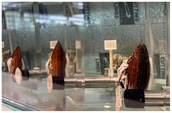 At the beginning of each experiment, the system was calibrated for 24 h. During calibration for each mussel specimen, extreme values of valve position were determined, and it was assumed that maximum value (magnet close to the sensor) indicated a closed shell (0%), and the minimum value (magnet far from the sensor) indicated 100% open valves (Figure 2). In the subsequent 24 h, the filtration behavior of each mussel in conditions without RDP was noted (control period). After that time, the pesticide was applied. Observations of mussel filtering behavior were conducted for the next 120 h–5 days (the study period).