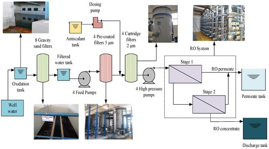 The plant’s pre-treatment, RO, and post-treatment stages are detailed below (Figure 2):