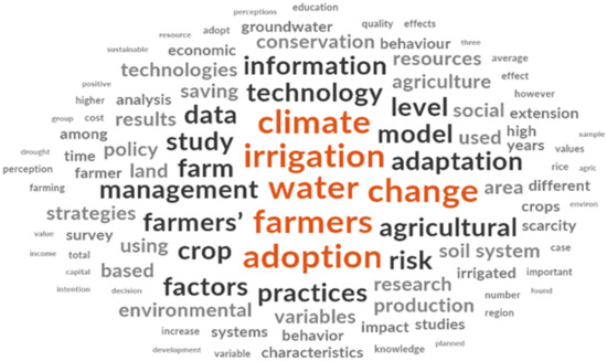 | Wheeler et al. (2021) | [60] | Australia | Farmers’ climate change risk perceptions and farm adaptation behaviour | Farmers with higher debt and a larger share of permanent crops in areas with higher temperatures and less rainfall were likelier to believe climate change posed a risk. There was evidence of a feedback loop where farmers who initially believed climate change was a risk took actions to reduce their risk exposure, which negatively fed back on their climate change concern. Conversely, original deniers who increased their risk exposure became more concerned about climate change. Farmers who sold land, decreased their irrigated area, and sold water entitlements were likelier to change from believers to deniers/unsure, suggesting reduced risk exposure lessened climate change concern. At the same time, deniers who increased irrigated areas and bought water entitlements became more concerned about climate change risk. Farmers engaged primarily in permanent cropping (e.g., grapes or fruit trees) were less likely to perceive climate change as a risk than those primarily involved in annual cropping. This suggests that the crop type influenced water-management practices and risk perceptions. Deniers (farmers who did not perceive climate change as a risk) had larger average farm sizes than the rest of the sampled population. This may indicate differences in water utilisation practices and resource management strategies based on farm size. Believers (farmers who perceived climate change as a risk) had a statistically significantly larger irrigated area than all other farmers. Believers had statistically significantly higher debt-to-equity ratios, while deniers had statistically significantly lower debt-to-equity ratios. This suggests that financial factors may influence farmers’ decisions regarding water management and risk perceptions related to climate change. |