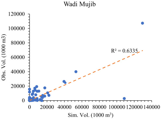 Moreover, the annual precipitation across the region exhibits a range from 50 mm to 500 mm, with a distinct bias towards the western and northern sectors of the Mujib Basin, illustrated in Figure 6. The cumulative annual rainfall over the entire Mujib catchment is approximately 866 million cubic meters (MCM), boasting an average annual precipitation of 131 mm. Within this, the Wadi Mujib section accounts for around 497 MCM, with an average rainfall of 111 mm, while the Wadi Wala segment records about 369 MCM, featuring a higher average rainfall of 174 mm. This comprehensive overview of the annual rainfall patterns and noteworthy wet years forms a crucial backdrop for understanding the hydrological dynamics of the Mujib Basin. It is worth noting that the rainfall data and streamflow data for the selected catchments were acquired from the Ministry of Water and Irrigation in Jordan.