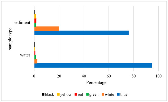 Chart showing the color variation in MPs identified in sediment and water samples.