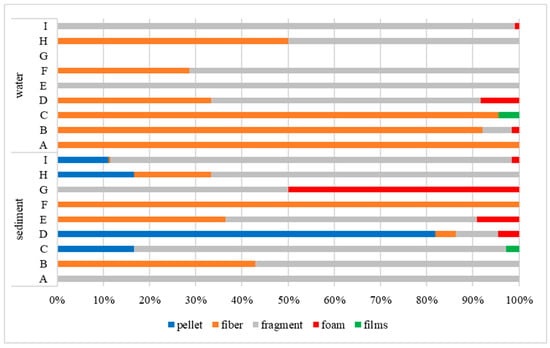 Sitewise proportions of MP categories identified in the sediment and water samples.