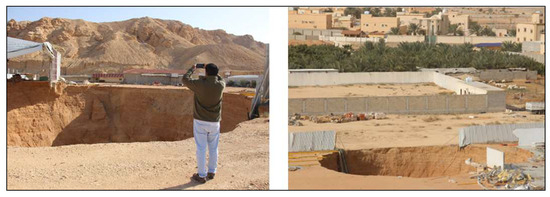 - Youssef, A.M.; Zabramwi, Y.A.; Gutiérrez, F.; Bahamil, A.M.; Otaibi, Z.A.; Zahrani, A.J. Sinkholes Induced by Uncontrolled Groundwater Withdrawal for Agriculture in Arid Saudi Arabia. Integration of Remote-Sensing and Geophysical (ERT) Techniques. J. Arid Environ. 2020, 177, 104132. [Google Scholar] [CrossRef]
