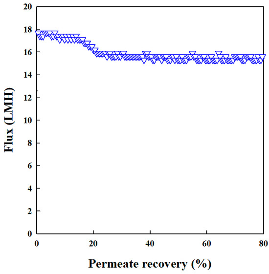where Vi is initial AMD feed volume (L) and Vc is the final concentrated AMD volume (L). The permeate flux of the membrane was calculated by measuring the permeate volume collected at 5 min intervals using the following equation:
