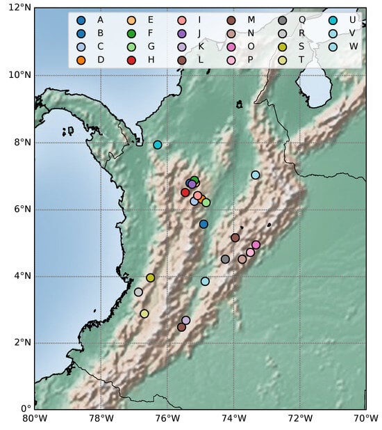 One country heavily dependent on hydroelectric power generation with a dispersed reservoir system is Colombia. The country projects a hydroelectric generation of more than 60% of the national demand by 2030 [,]. Colombia also conducts comprehensive studies on hydroelectric systems aiming at the established environmental sustainability objectives and policies for adopting renewable energies. Hence, studying these systems allows for a better understanding of their potential, efficient management, and contribution to environmental objectives, fostering the country’s energy autonomy. However, Colombia’s unique geographical and climatic characteristics introduce additional challenges in the operation and management of hydroelectric systems. The overall climatic diversity causes high heterogeneity in hydrology, both temporally and spatially, presenting challenges in understanding and prediction []. Accordingly, hydrological models must explain the time-varying water resources and quantify their impact on hydroelectric planning and generation.