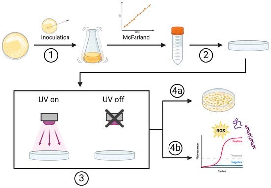 - Santos, A.L.; Gomes, N.C.; Henriques, I.; Almeida, A.; Correia, A.; Cunha, Â. Contribution of reactive oxygen species to UV-B-induced damage in bacteria. J. Photochem. Photobiol. B 2012, 117, 40–46. [Google Scholar] [CrossRef]