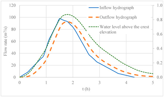 Outflow hydrograph and water level inside the reservoir.