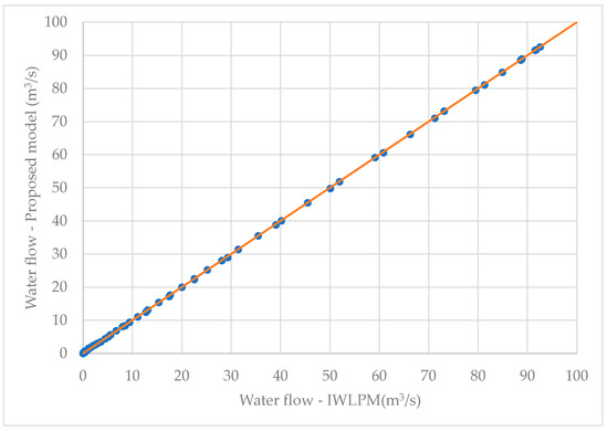Figure 11 presents the dispersion graph related to the outflow hydrograph. The proposed model (EWLPM) can replicate the results of the IWLPM, as most computed values align with the orange line, indicating a suitable adjustment.