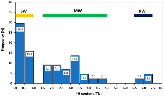 - Hubert, P.; Olive, P.; Ravailleau, S. Estimation pratique de l’âge des eaux souterraines par le tritium. Reseau 1996, 9, 523–533. [Google Scholar] [CrossRef]