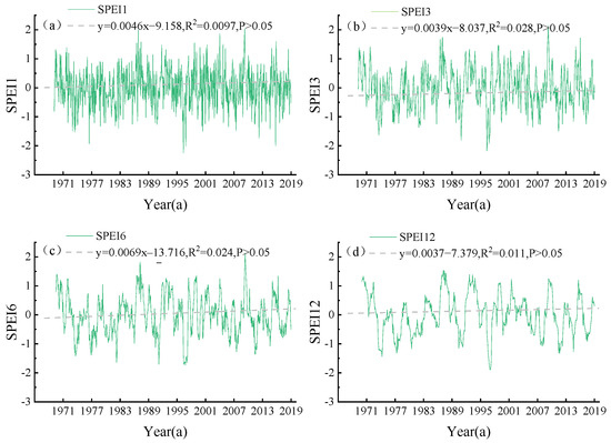 Change rules of the SPEI1 (a), SPEI3 (b), SPEI6 (c), and SPEI12 (d) time scales.