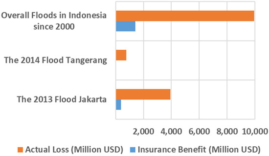 Comparison of insurance benefits and actual losses due to floods in Indonesia since 2000 and several case examples.