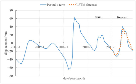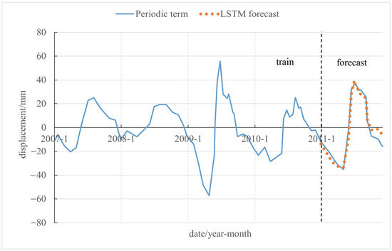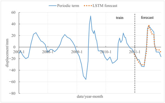 Given the step-like nature and evident periodicity of displacement at Baijiabao, this study proposes a landslide prediction method based on displacement decomposition using ICEEMDAN-SSA. This technique enables the precise extraction of trend and periodic terms from the landslide displacement data. A univariate LSTM model predicts the trend term, while a multivariate LSTM model addresses the periodic term. In this predictive framework, data from 2007 to 2010 serve as the training set, and data from 2011 are designated as the prediction set.