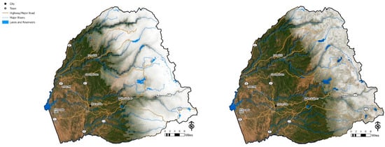 Table 1 shows the EGS identified for the UARW, including the service type (i.e., provisioning, regulating, supporting, or cultural) and a general description of its economic benefit to people. This natural capital framework was first initiated by de Groot et al. [] and subsequently improved through the works of the MEA and Pascual et al. [,] and has been additionally improved and adapted for the UARW by filtering for relevant EGS present in the UARW.