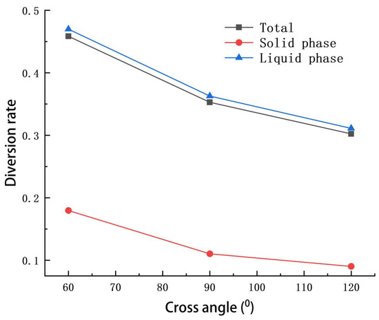 Diversion rate of tributaries in three-way channel with different cross angles.