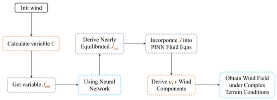 The approach employed in this study to address complex terrain wind fields involves not directly training the wind vector (u, w), but rather identifying a key variable. This variable is then trained using a neural network model, and the trained key variable is subsequently introduced into the fluid equations to compute the characteristics of terrain-adaptive wind fields. The advantage of this approach is the avoidance of vector operations, thereby reducing the training difficulty of the neural network model.