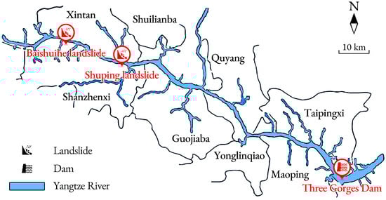 The Yangtze River, the TGRA, and two landslides studied.