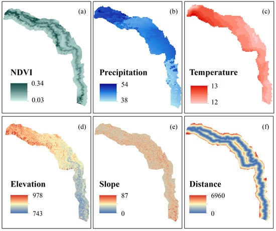 - Zhu, L.; Meng, J.; Zhu, L. Applying Geodetector to disentangle the contributions of natural and anthropogenic factors to NDVI variations in the middle reaches of the Heihe River Basin. Ecol. Indic. 2020, 117, 106545. [Google Scholar] [CrossRef]
